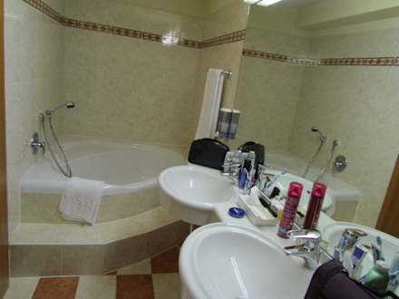 BadDas sehr großzügige Bad mit Eckbadewanne und Doppelwaschtisch
