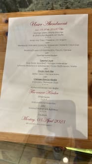 Abendmenü ist jeden Abend sehr kreativ und geschmacklich klasse. Tolle Küche.