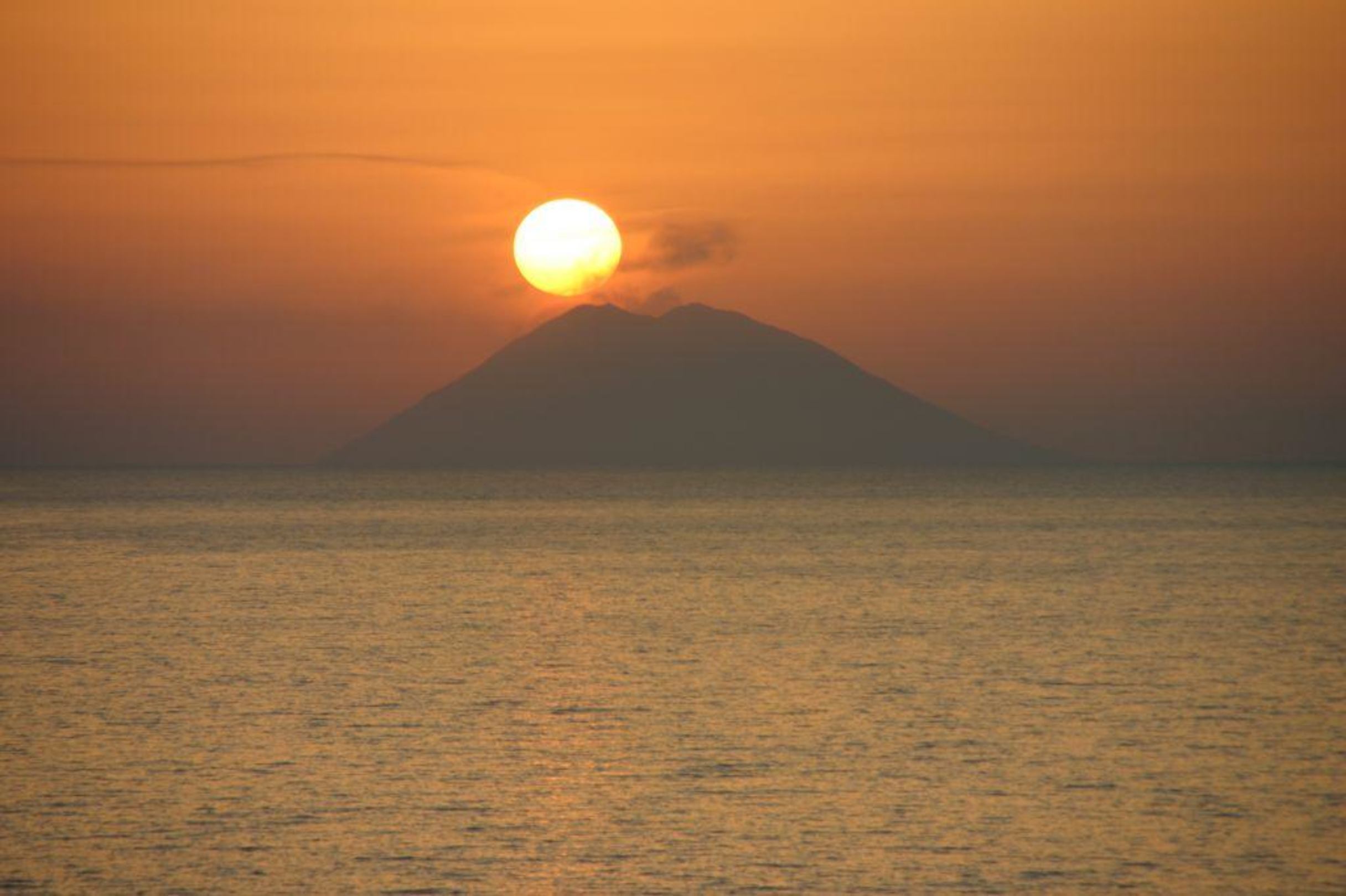 Stromboli SunsetBlick auf den Stromboli von der Terrasse bei Sonnenuntergang.
