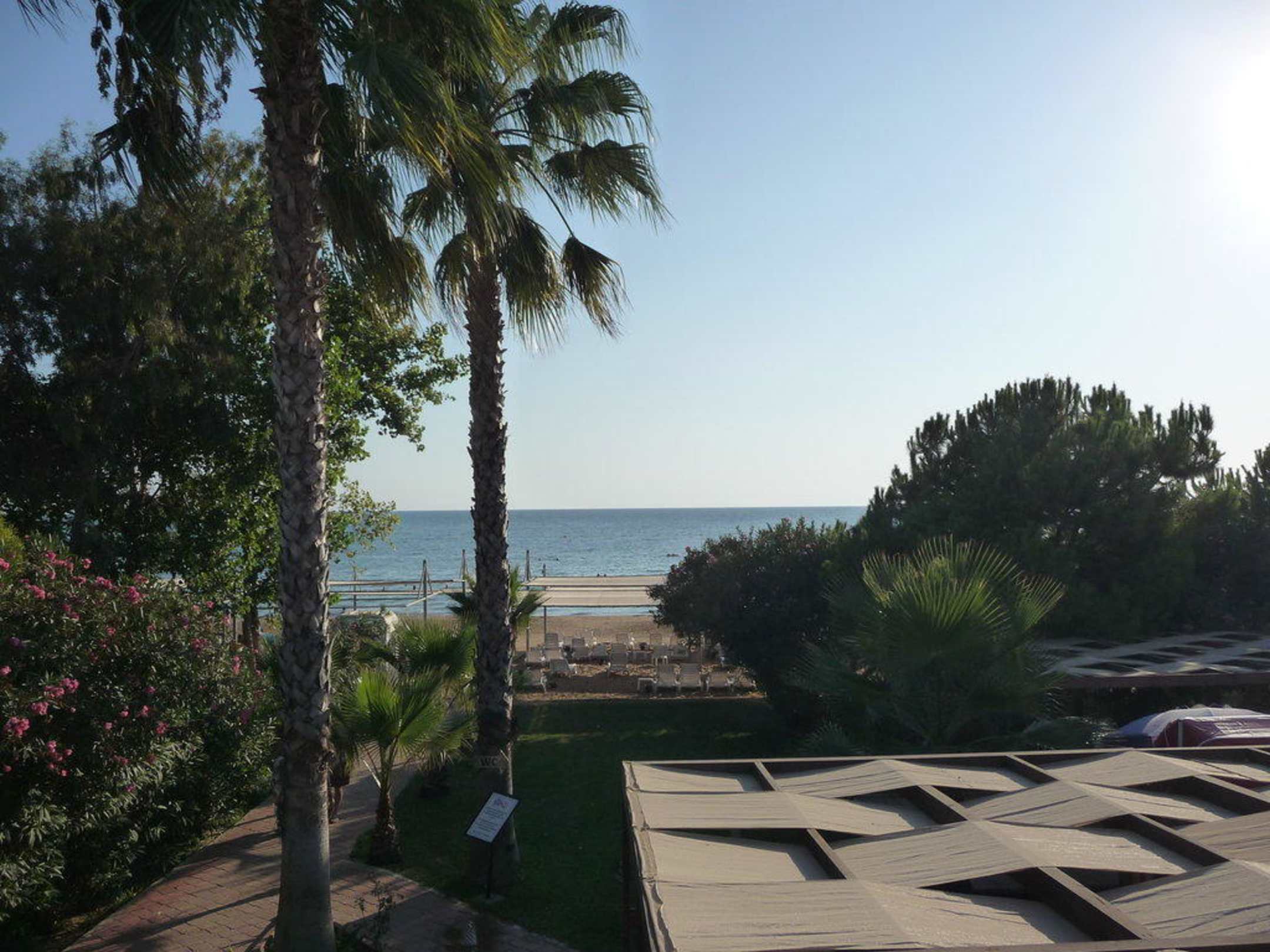 Blick zum StrandAusblick von der Aussenterrasse (Bühne für Aninmation) auf den Hotelstrand