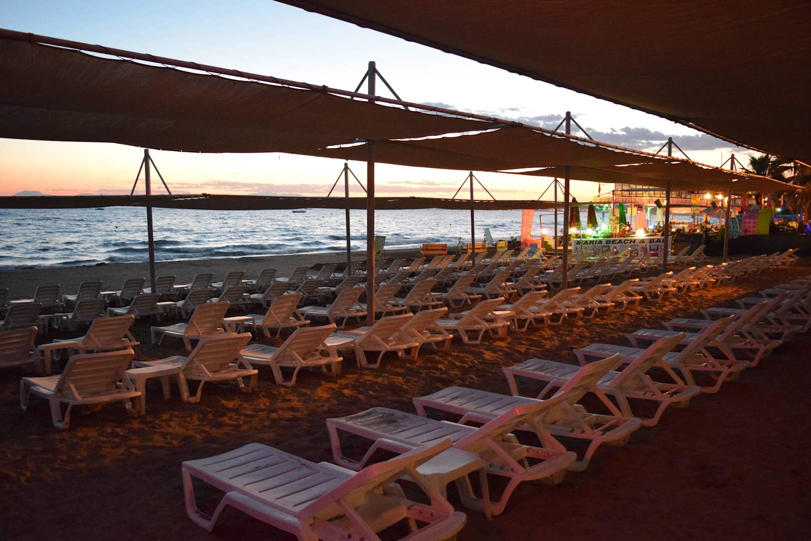 Hotelstrand beim Sonnenuntergang