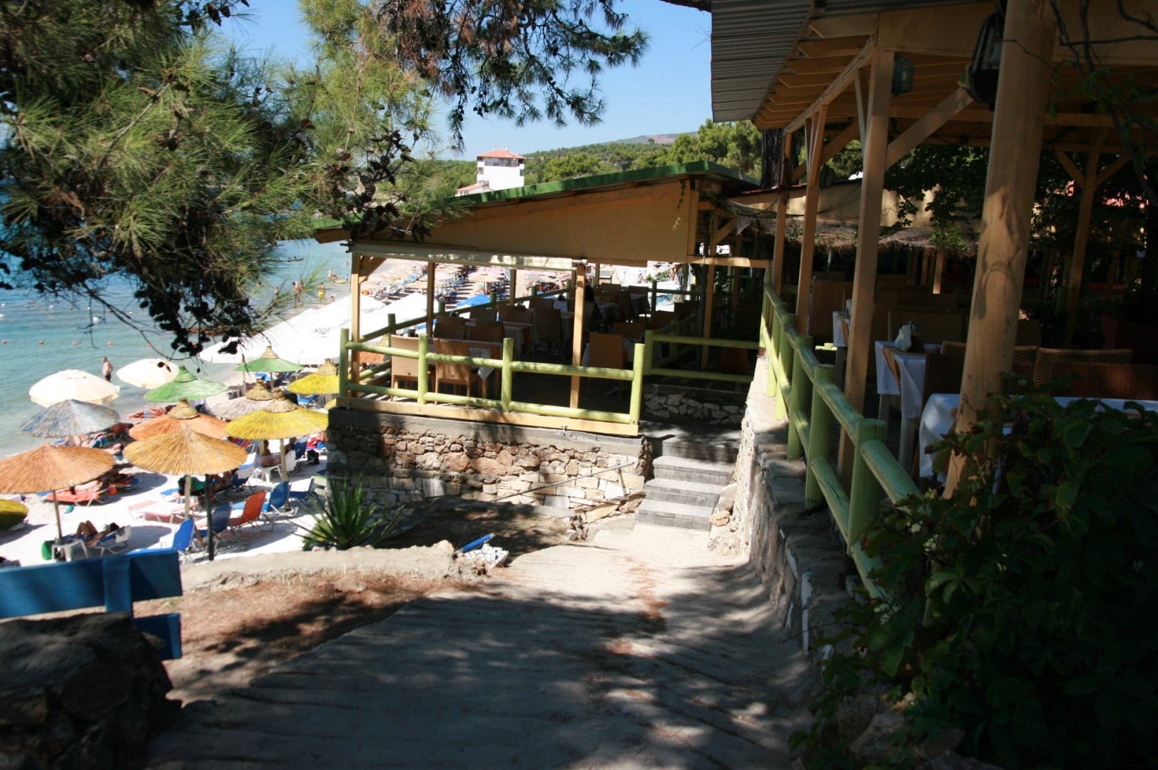 Zejscie z zparkingu na plażez i tawerny