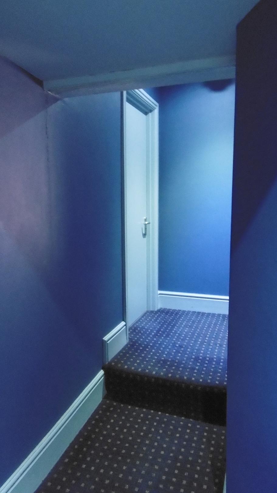 Der Gang zum Zimmer. Rechts vorne ist der Eingang zum Bad.
