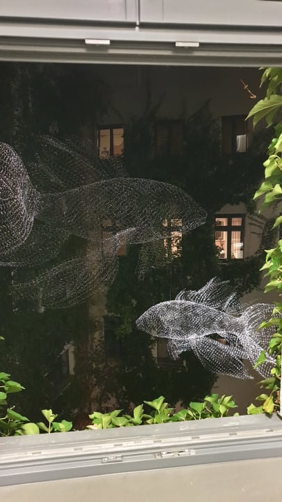 Hotel-Innenhof: Blick aus den Treppenhaus