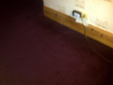 Teppich und Wand: Fleckig und abgenutzt