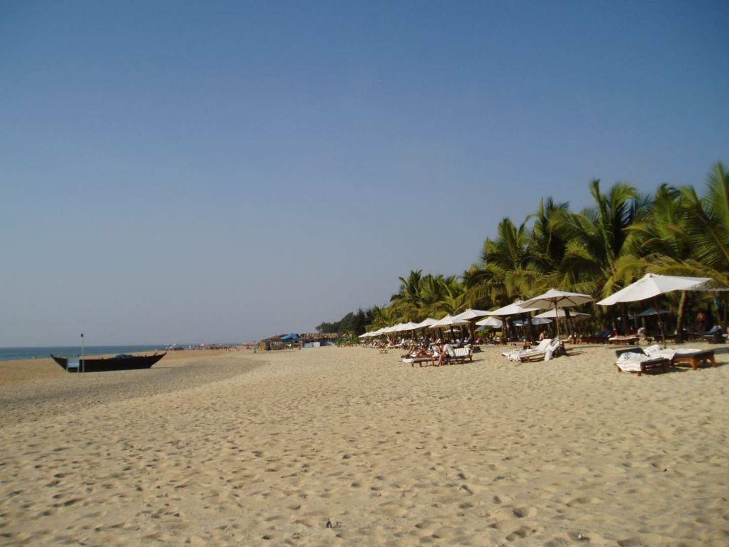 Blick über den Strand des Leela in Richtung der Beach-Shacks