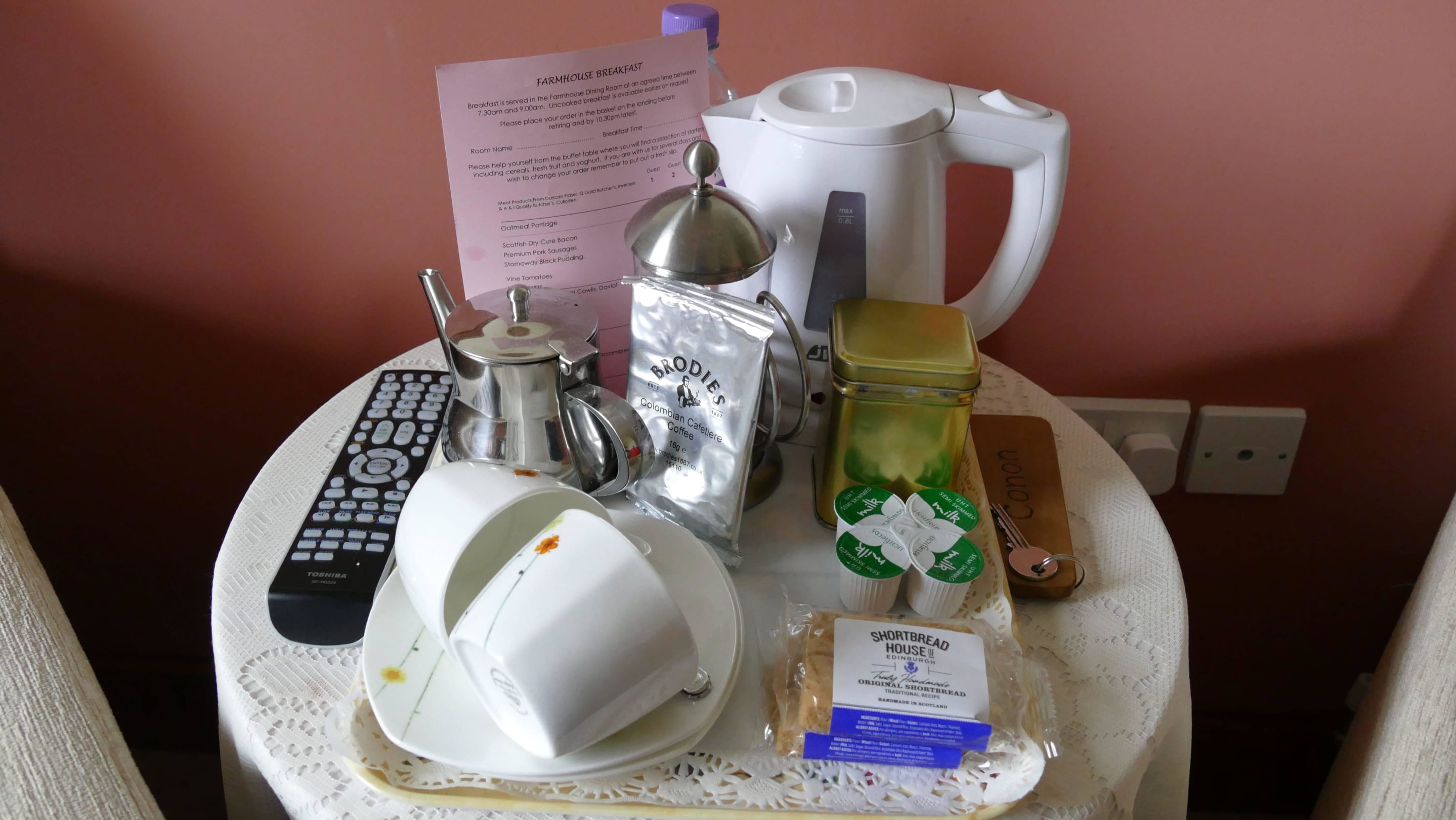 Teamakingfacility mit Shortbread und Süsskram
