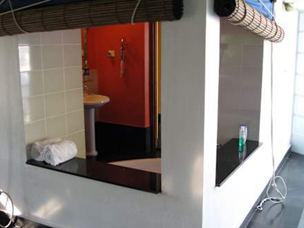 Badezimmer vom privaten Balkon aus
