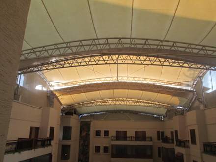 Balcony view directly down to the restaurant