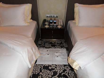 Betten aufgedeckt mit Hausschuhen