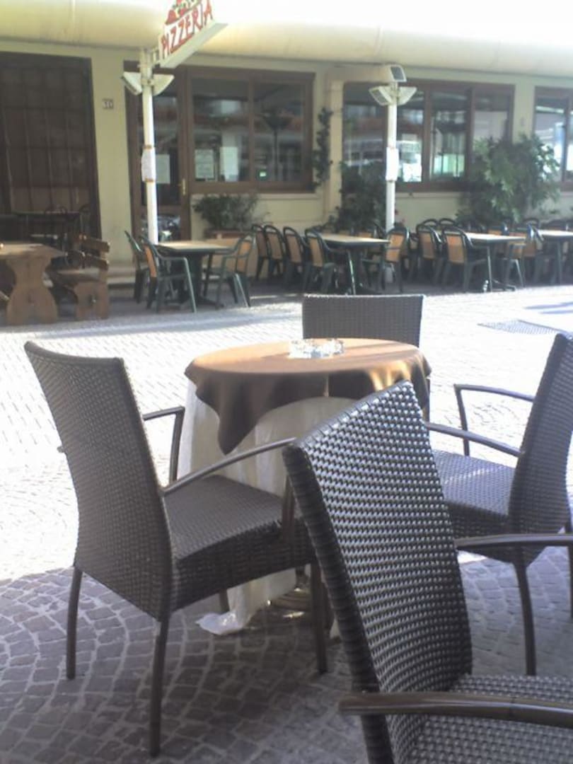 Sitzgelegenheit vor dem Hotel