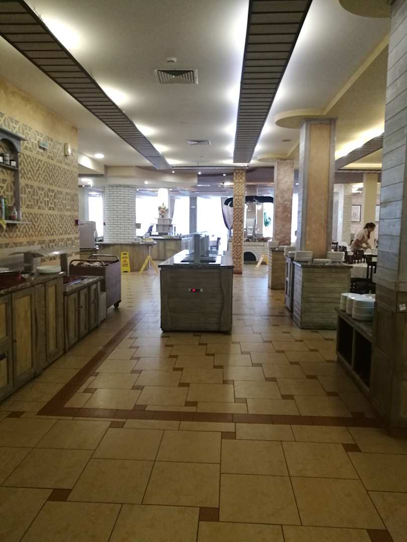 GastroBuffet Ansicht wenn man rein kommt. Rechts, nicht im Bild, Salate, geradeaus warme Speisen, hinten gab es Dessert, Brot, Früchte und Getränke