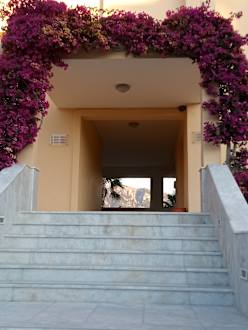 Treppenaufgang zum Aufzug und in die Zimmer mit Bergen im Hintergrund - Toller Blick
