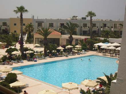 Pool 1 vom Altbau ausBlick vom Altbau auf den Pool, im Hintergrund der Neubau 1 sowie rechts der Beginn der Bar