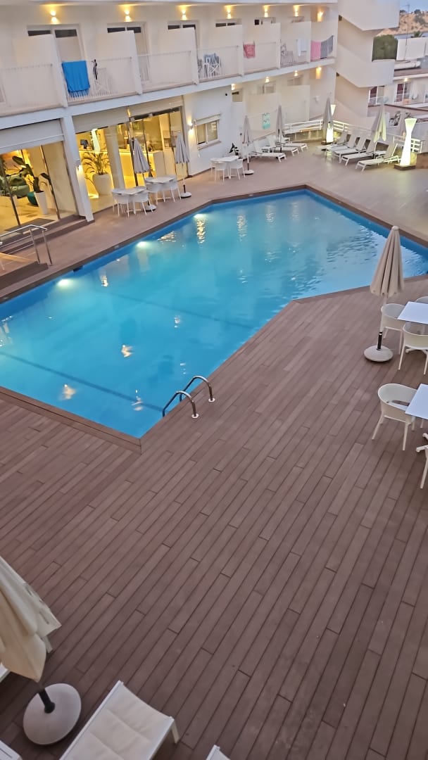 Blick vom Balkon auf den Pool