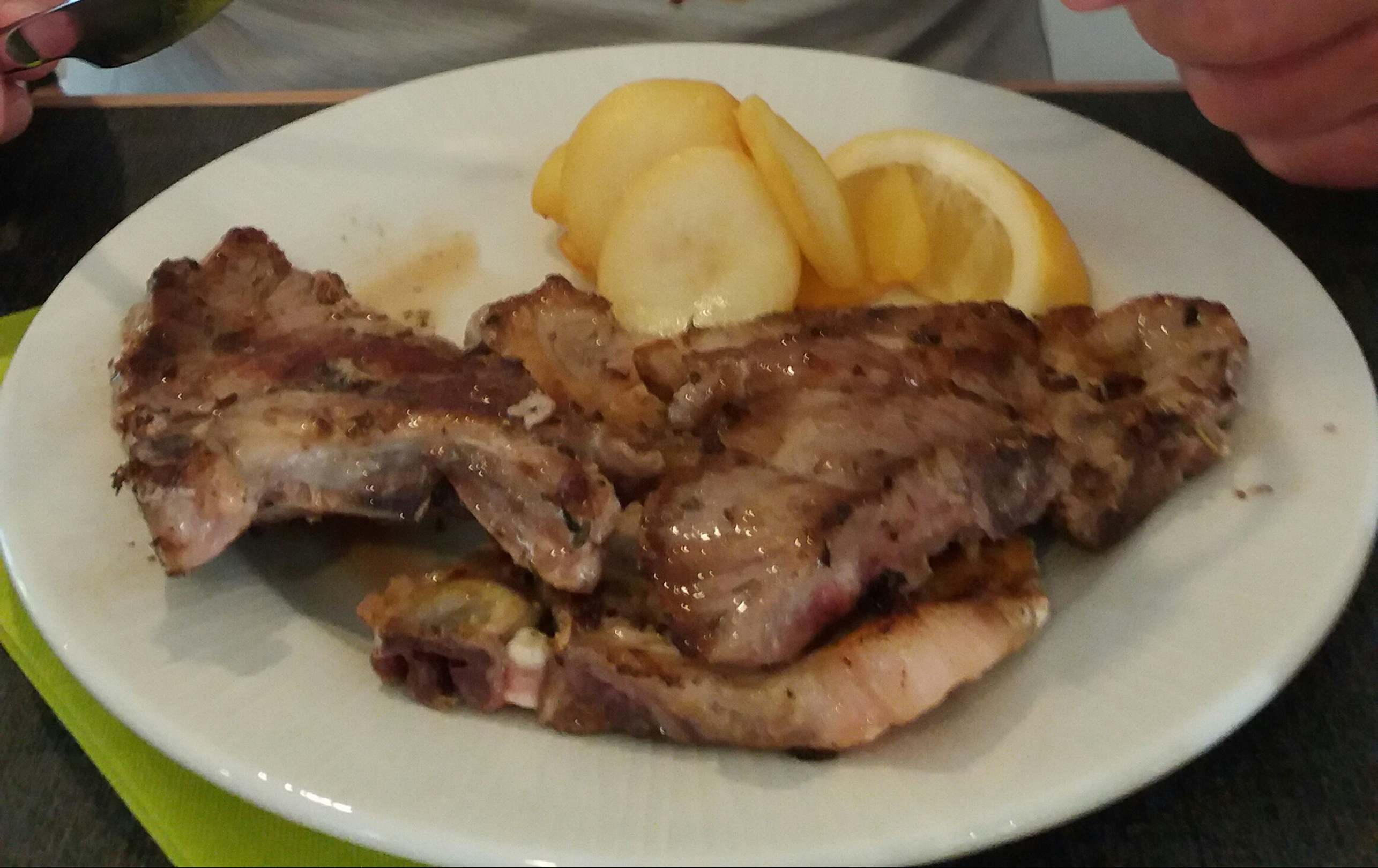 Frisch gebratene Schweinekoteletts mit Bratkartoffeln