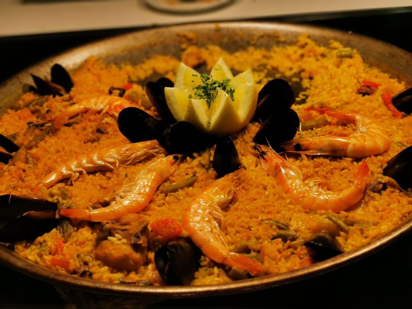 Paella am Abend.