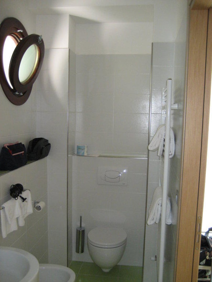Das schicke Badezimmer mit Bullauge
