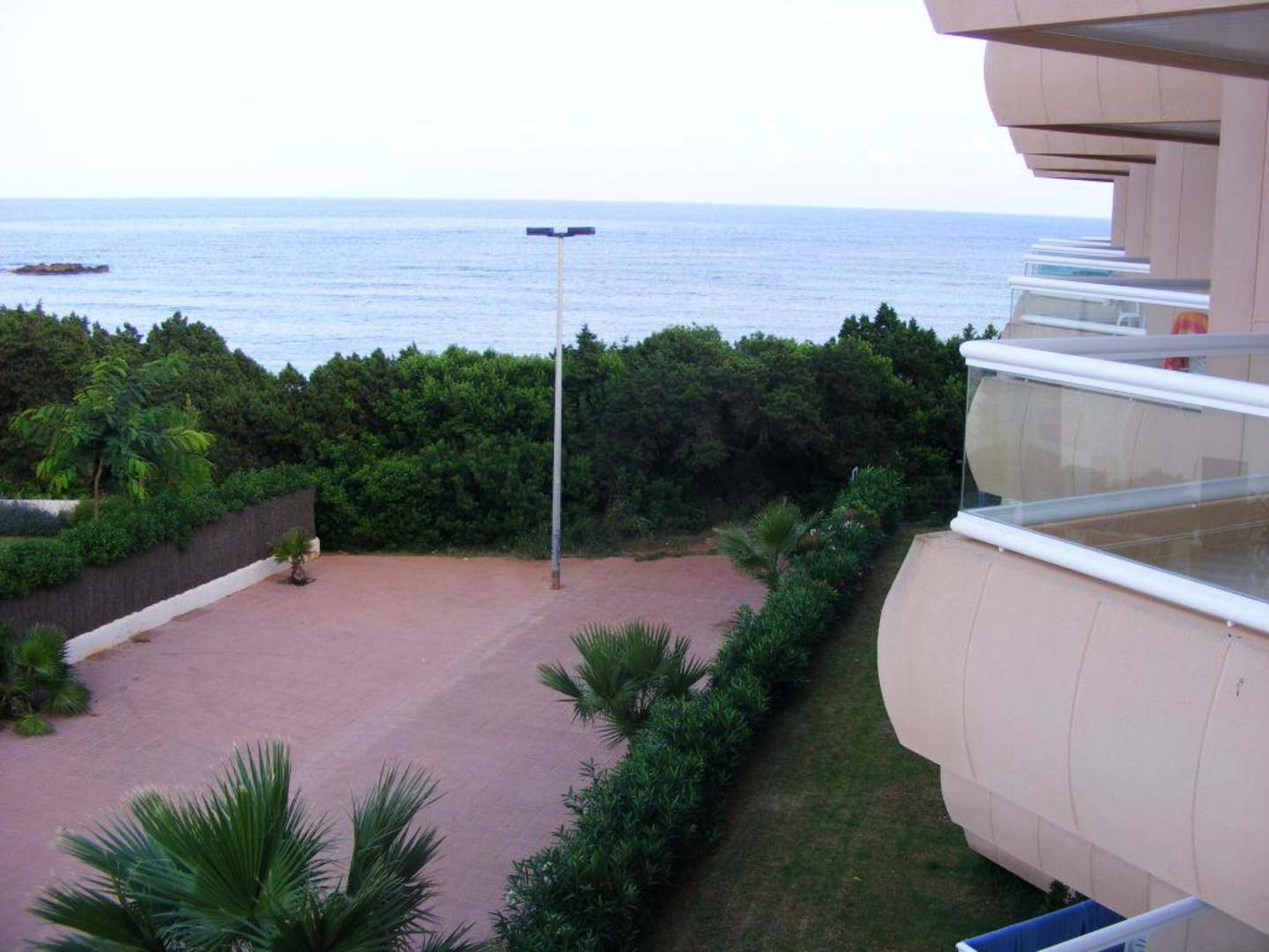 Von der Rückseite des Hotels aufs Meer blicken