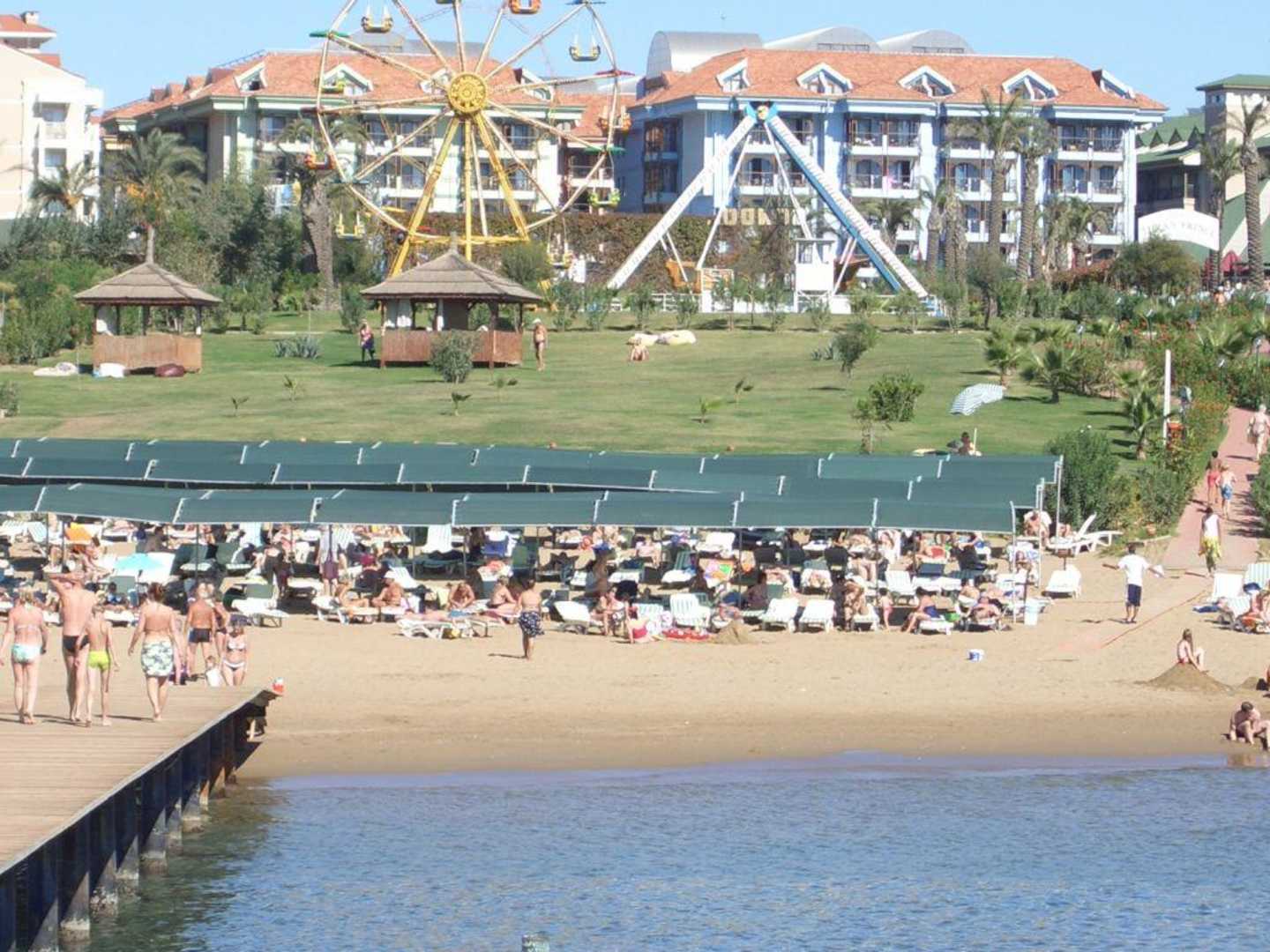 Hotelanlage mit Riesenrad und Strandabschnitt
