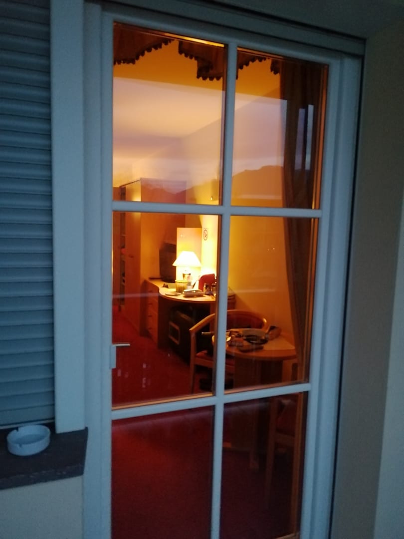 Blick vom Balkon in unser Doppelzimmer.