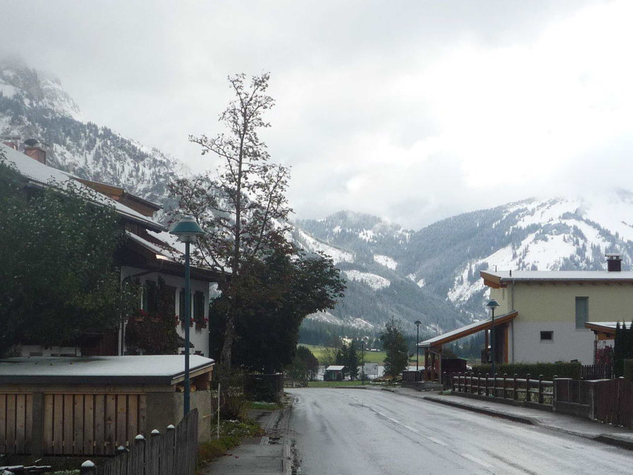 Straße vorm Hotel mit Blick in Richtung Berge