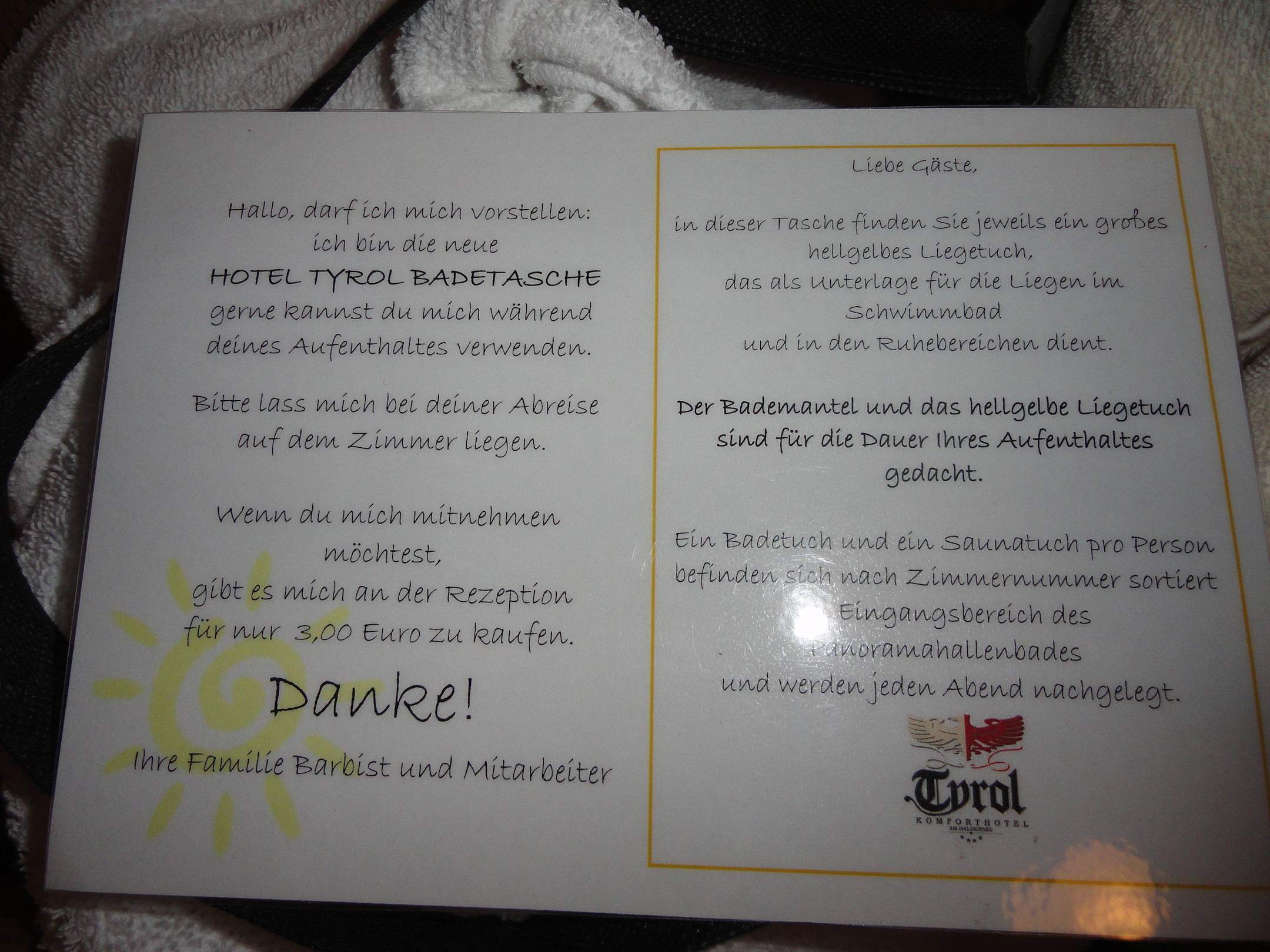 Hotel Tyrol Haldensee Info z.Badetasche Zimmer 203