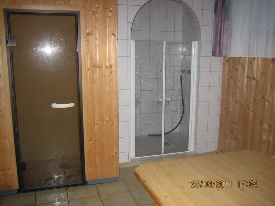 extra abgetrennte Dusche im Saunabereich