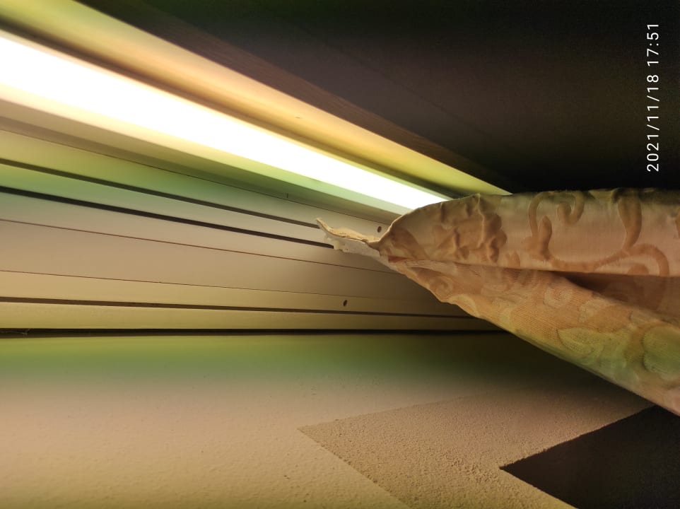 Mehrfach ausgerissener Zimmervorhang an allen Enden ausgerissen.