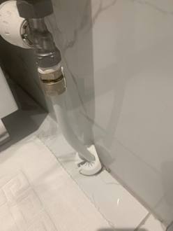 defekte Verkleidung Heizungsrohr Bad