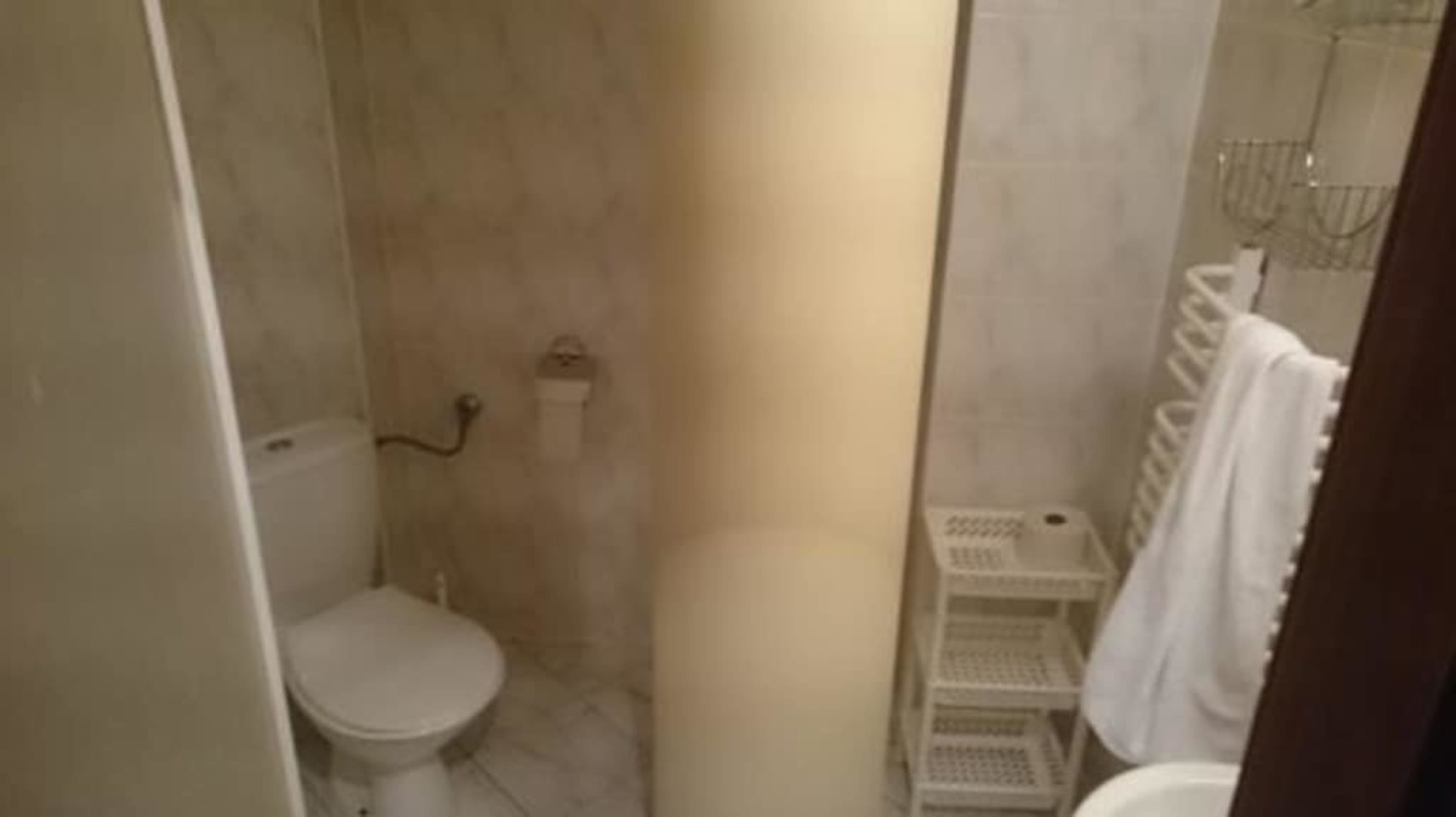 Łazienka ze słupem pośrodku w pokoju standard