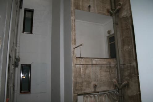 Der Ausblick darüber waren noch 7 Stockwerke, so dass der Himmel kaum zu sehen war und das Wetter erraten werden musste.