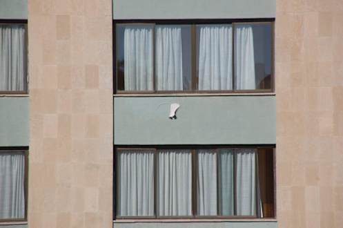 Teil Vorderansicht mit hängenden Gardinen