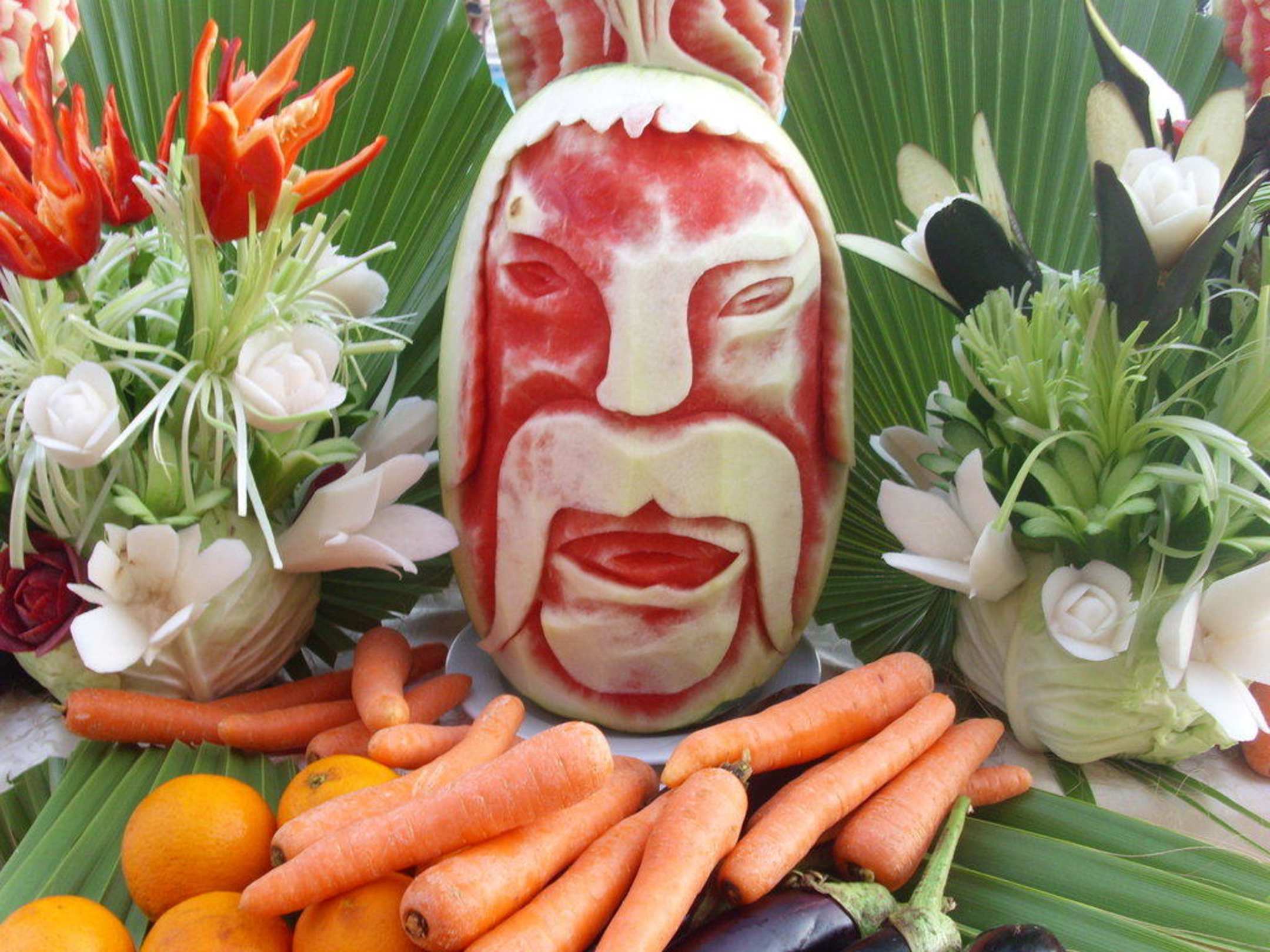 Deko vor dem Restaurant mit frischem Gemüse