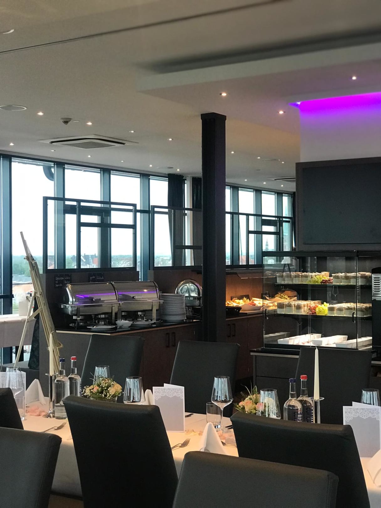 Das Restaurant mit Büffet am Abend.