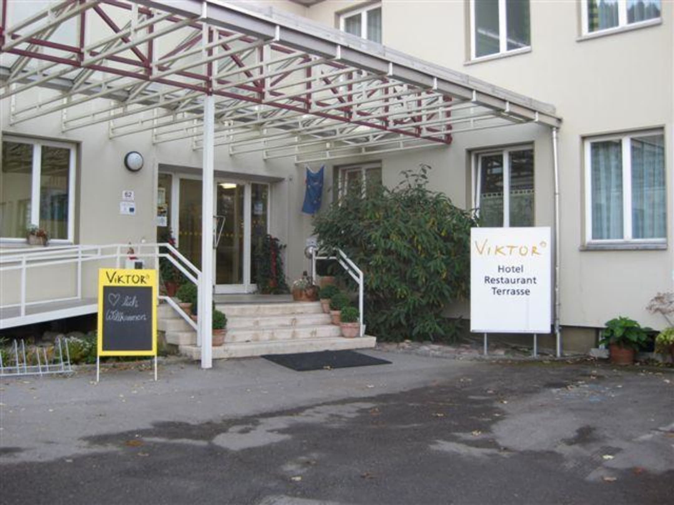 Großzügig gestalteter EingangsbereichDer Eingangsbereich zum Hotel Viktor, links barrierefrei und breiter Stiegenaufgang.