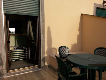 Von der Zimmeterrasse aus mit Blick auf das Zimmer
