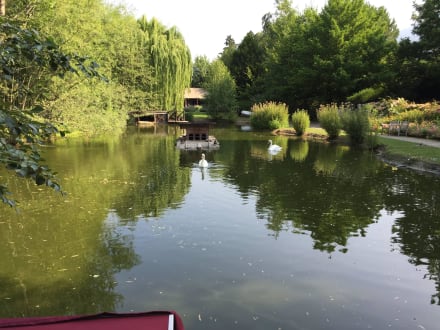 Blick auf den Teich und die Safari Lodge