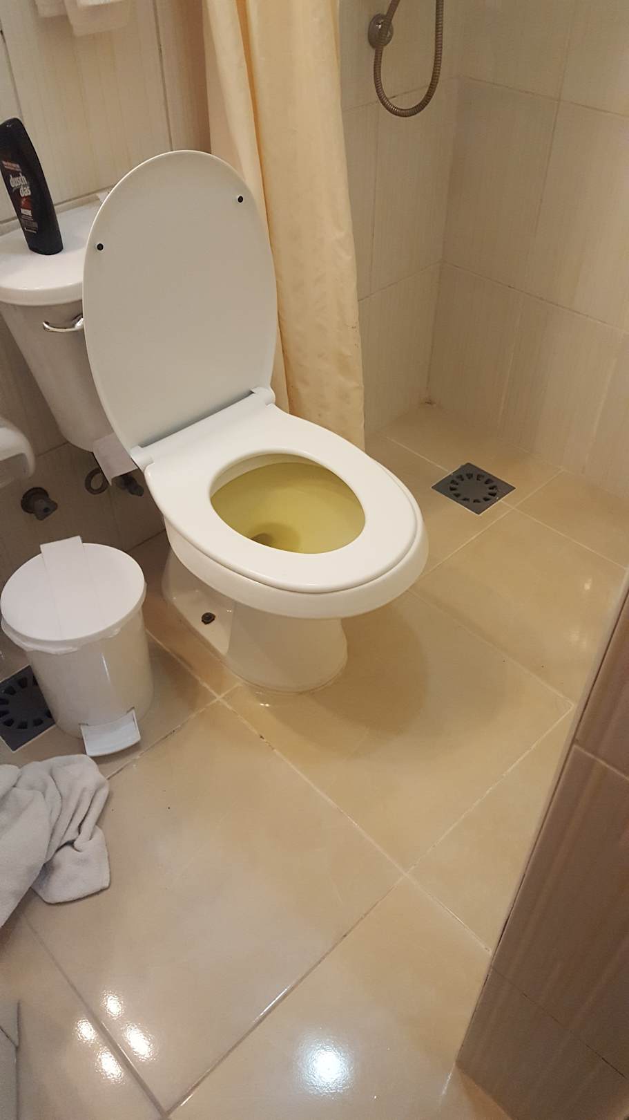 So, in diesem Zustand mussten wir in diesem.zimmer die Nacht verbringen. Lecker