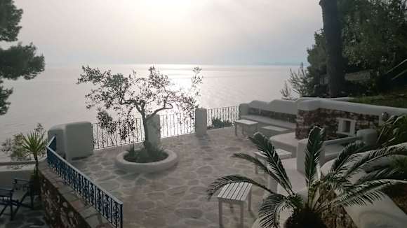 #0604 ... neu gestaltete und großzügig erweiterte Sonnenterrasse, Sonnenuntergang mit Blick (nordwestlich) auf den Golf von Kassandra