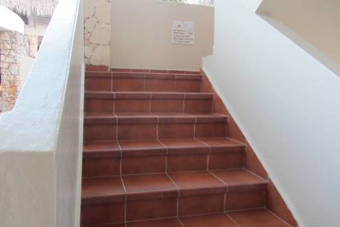 Treppe ohne Handlauf zum 1. Stock , kein Lift, mußte da mit Krücken rauf.
