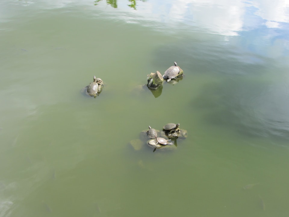 Teich mit Fischen und Schildkröten