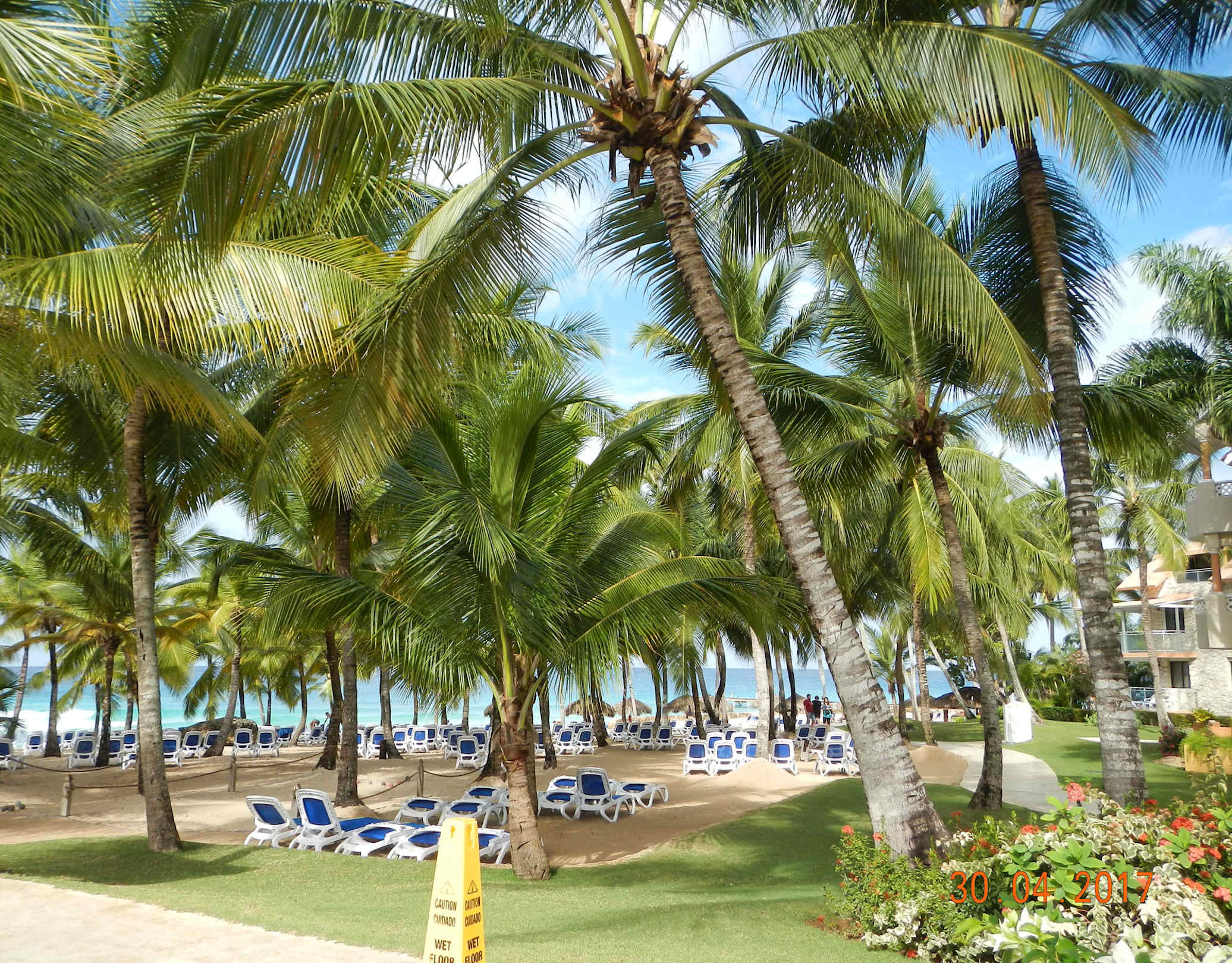 Überall schattige Palmen am Strand