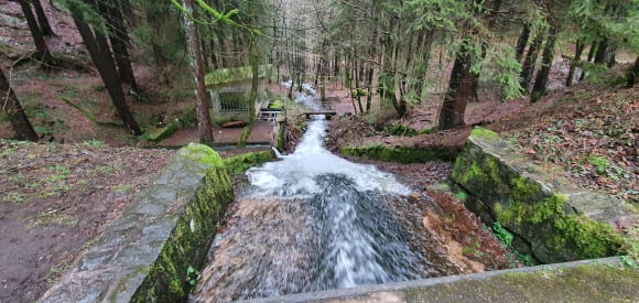Abfluss vom Pfanntalsteich zwischen Hotel und Oberhof