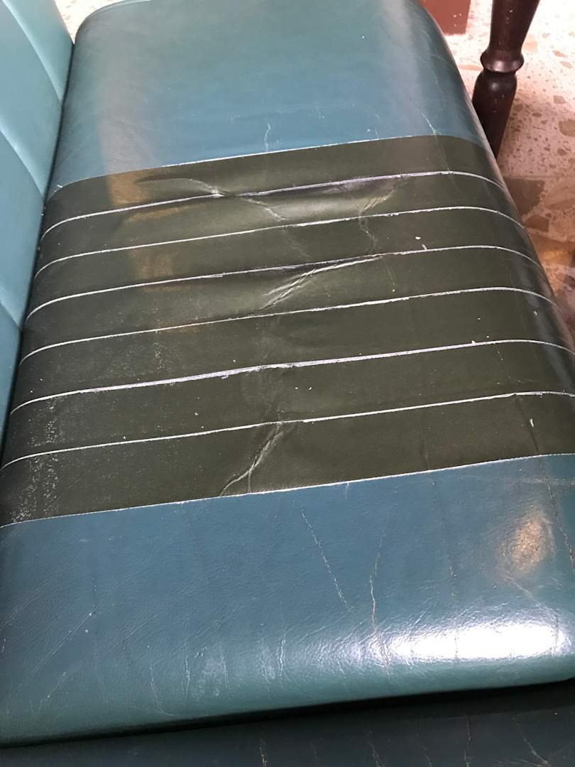 Sitzbank im Restaurant Sitzfläche mit Klebeband repariert