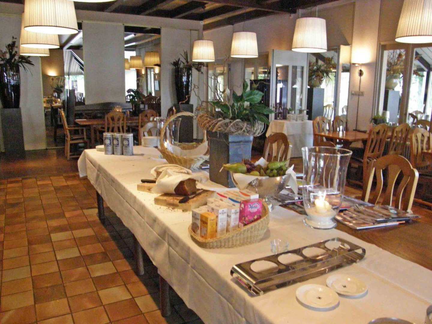 Einde ontbijt, tafel wordt leestafel