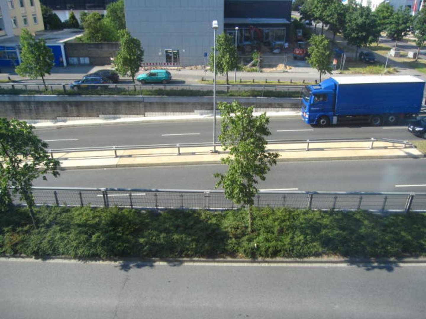 Blick aus dem Fensterleider eine sehr viel befahrene, laute Straße