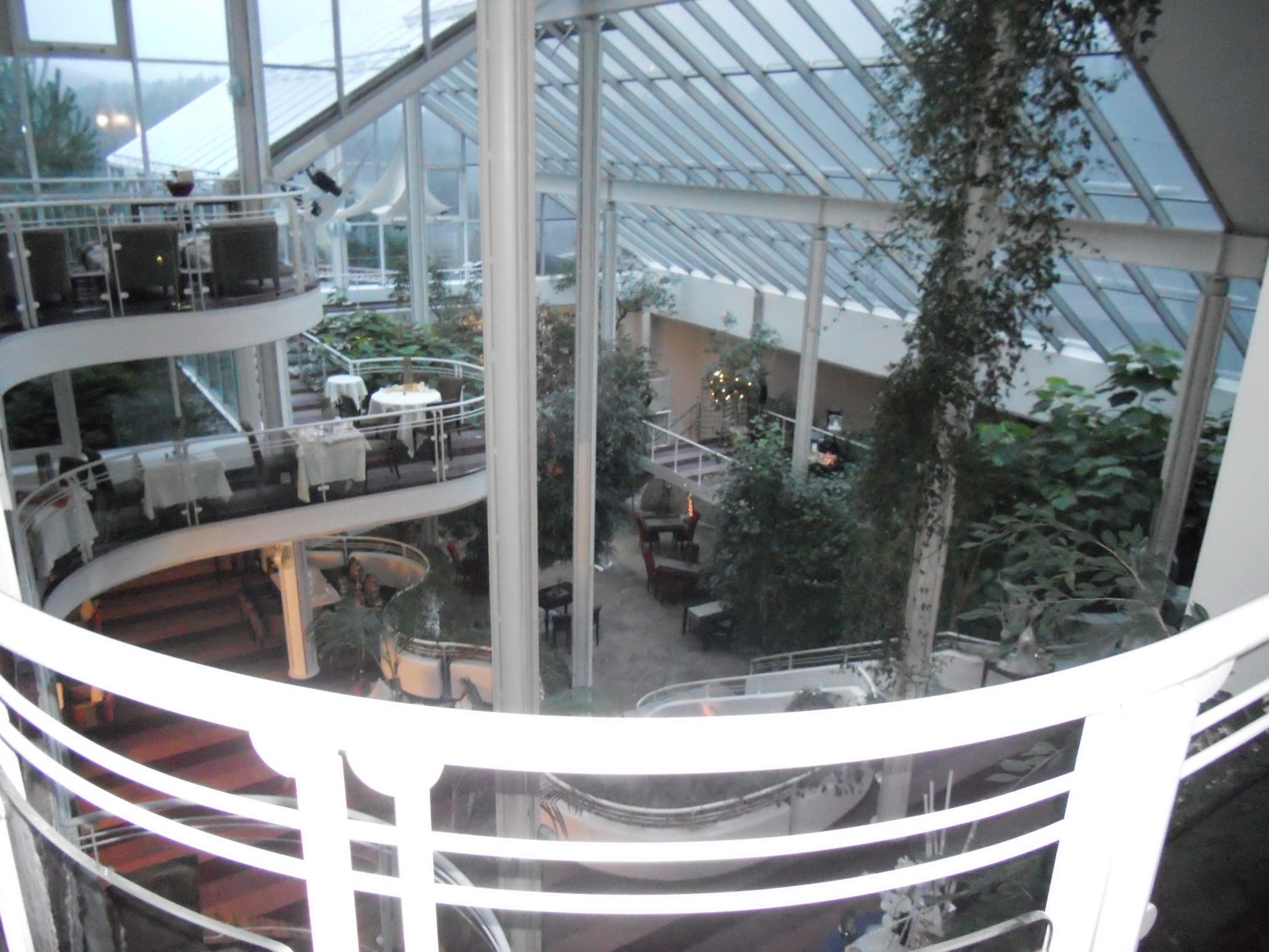 Offene Lobby unter hellem Glasdach