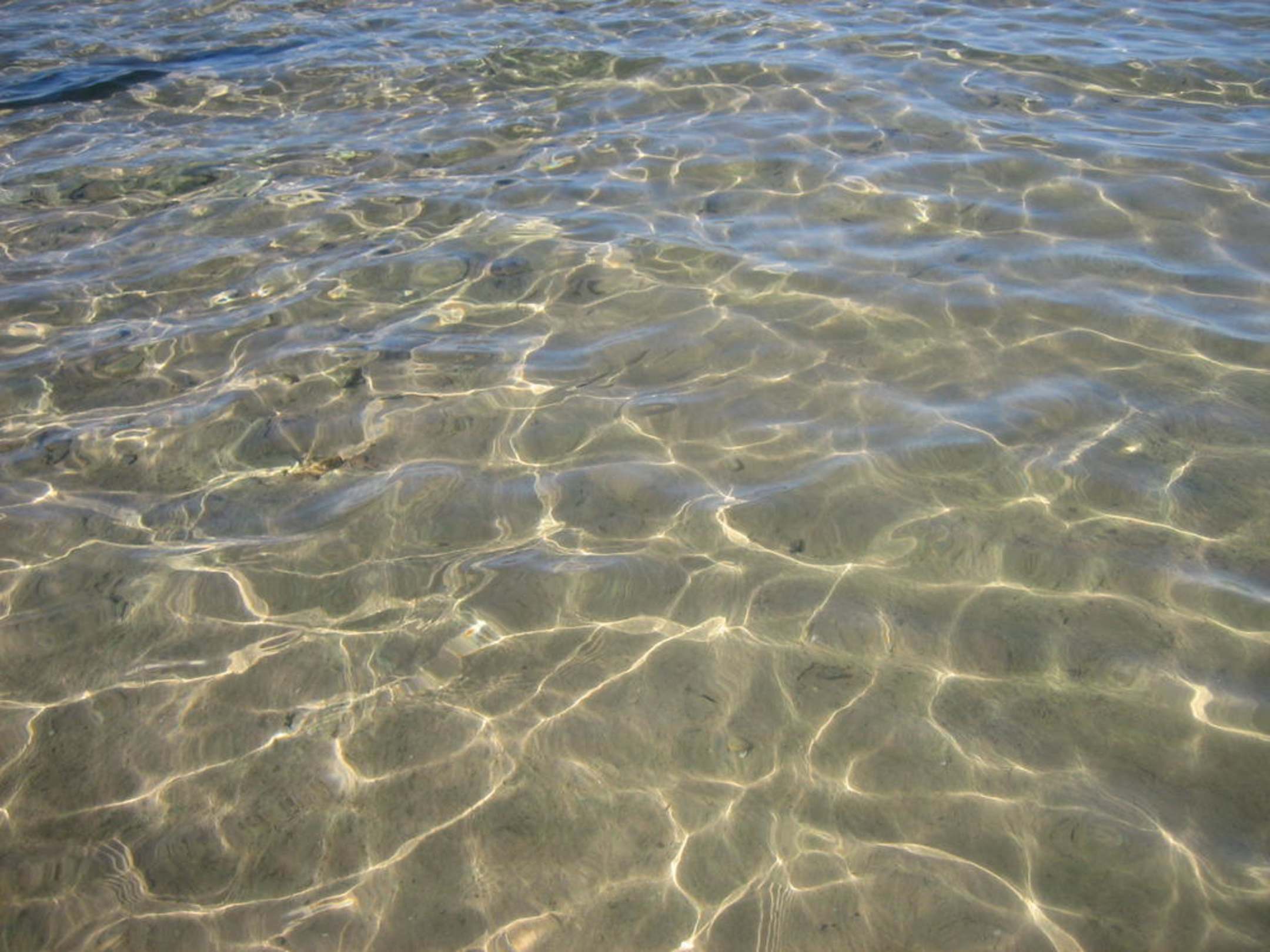 Klares Wasser, knietief bis 200m in die Bucht