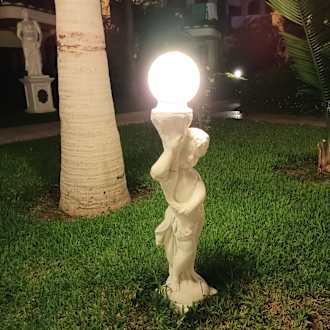 Niedliche Figuren mit Lampen im Garten